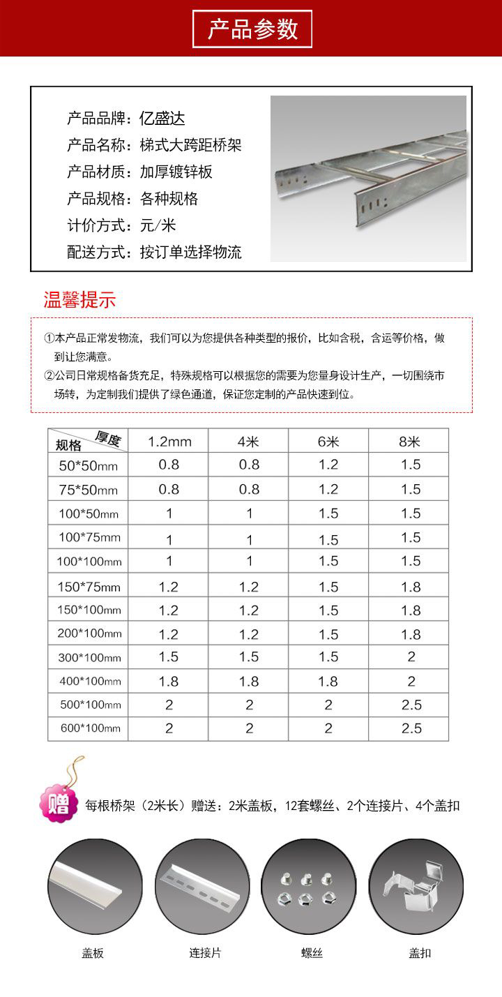 • 產品名稱: 榮成梯式大跨距橋架